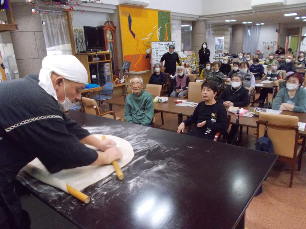 目の前での蕎麦打ちを懐かしいと感じる利用者様もいらっしゃいました☆