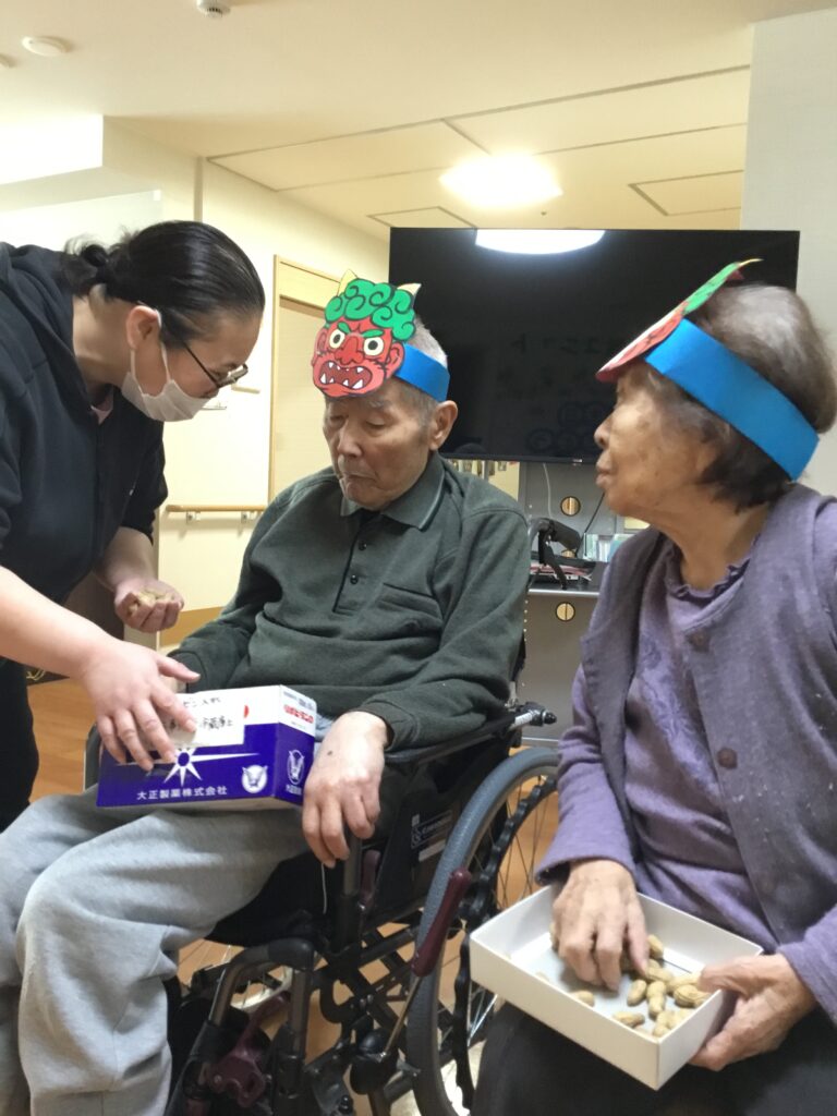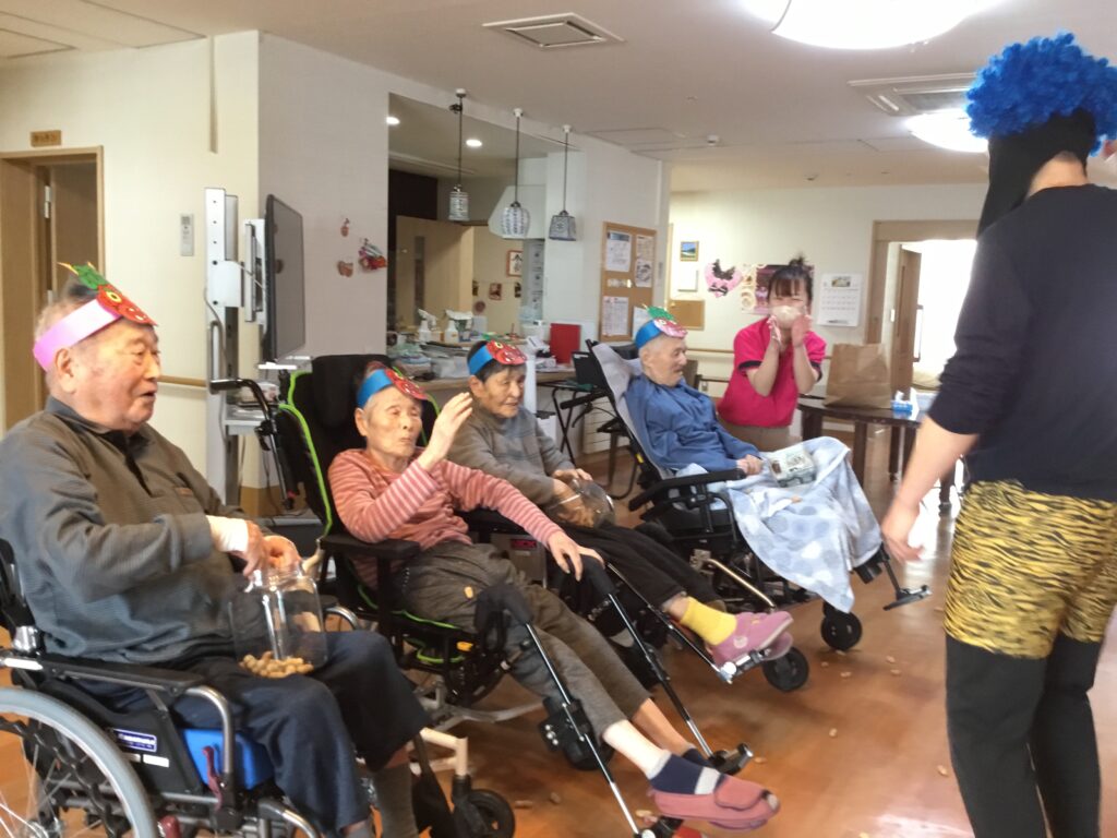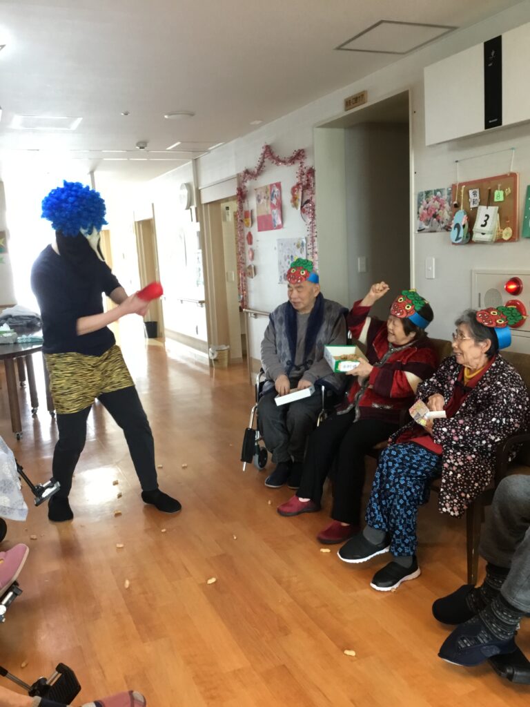 鬼は外! 2026.2.18 のなかの里では毎年恒例の節分をおこないました! 節分に限らず、季節の行事は生活にメリハリを提供するなどの意味があります! また特に冬季は屋内中心の時間が多くなり、時間の感覚や季節感を感じることが少なくなりがちです。 利用者様も楽しんでいる様子で節分に参加していただきました! 節分の様子をお伝えいたします!