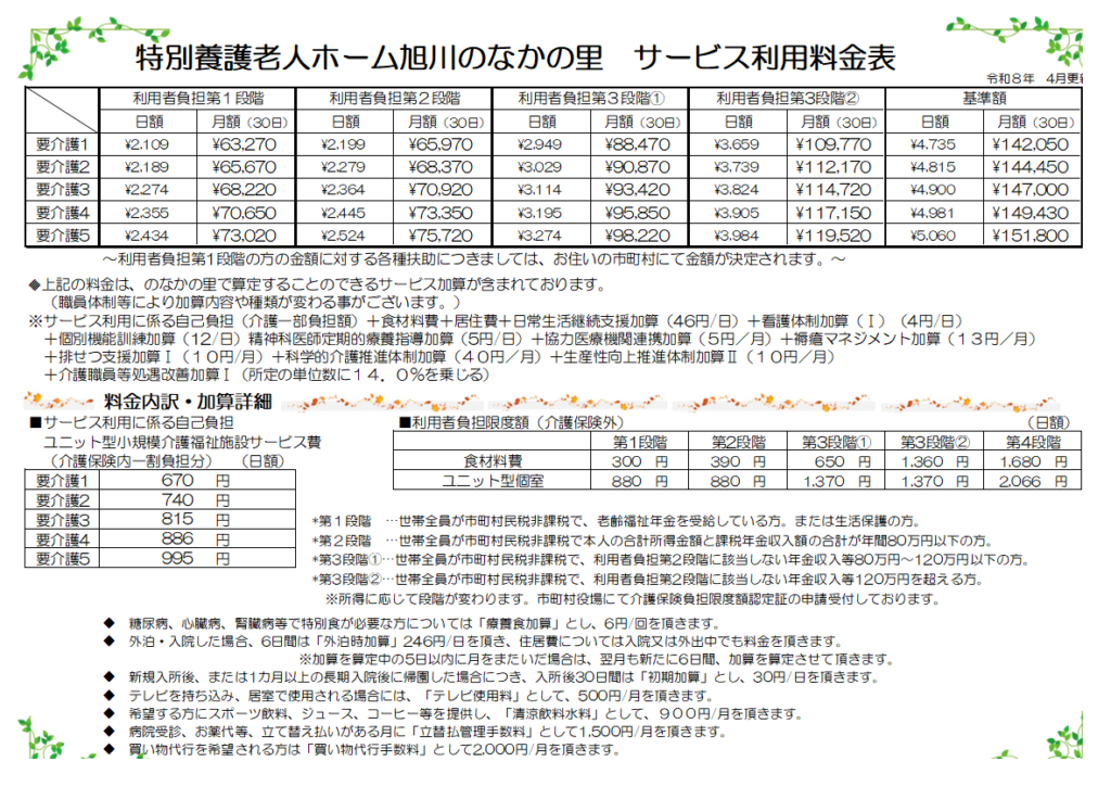 令和7年4月からの料金表 ※1割負担の方の場合